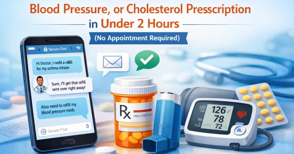 Managing chronic conditions is challenging enough without adding prescription access barriers. Whether you need to refill your asthma inhaler before allergy season, maintain your blood pressure medication without a gap, or keep your cholesterol levels stable while your doctor's office is booked solid, online prescription refills offer a practical solution.