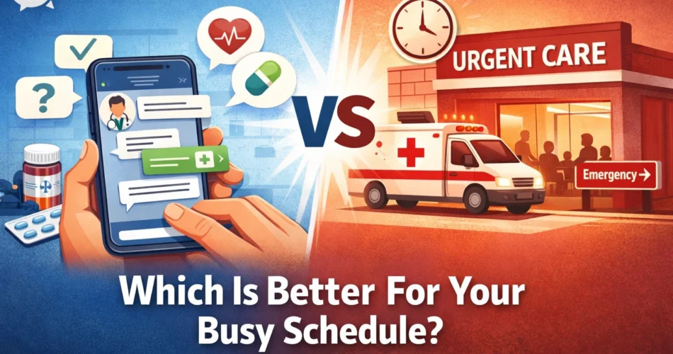 Urgent Care: Requires driving to a location, finding parking, and sitting in a waiting room. Even if the clinic is "empty," the administrative process of checking insurance and verifying identity takes time.