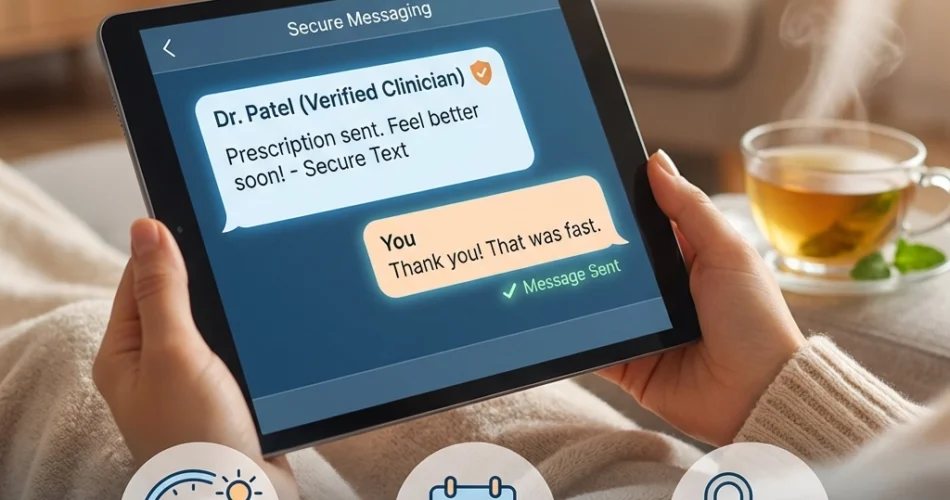 Privacy and comfort. Discussing symptoms from home via secure text messaging feels less stressful than explaining your situation in a crowded waiting room.
